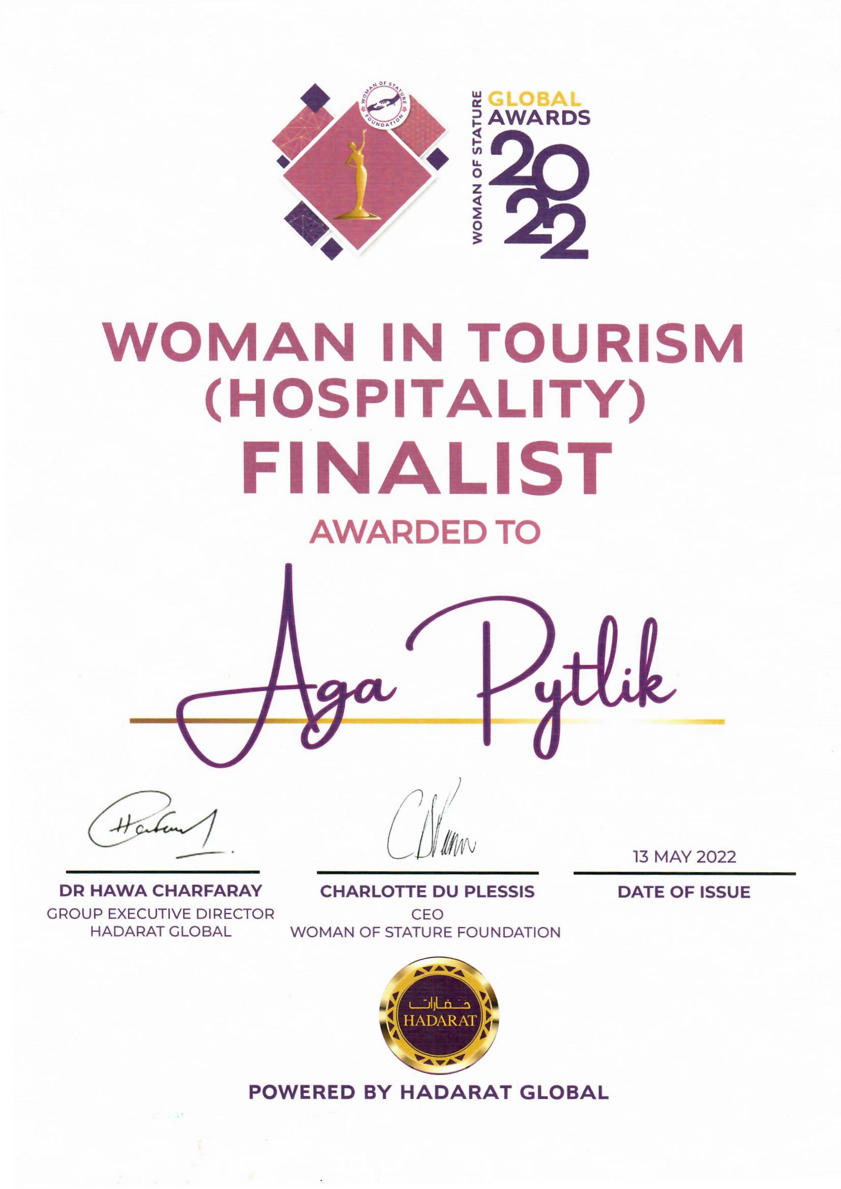 Woman in Tourism and Hospitality Finalist 2022 – Global Awards Woman of Stature by Hadarat Global